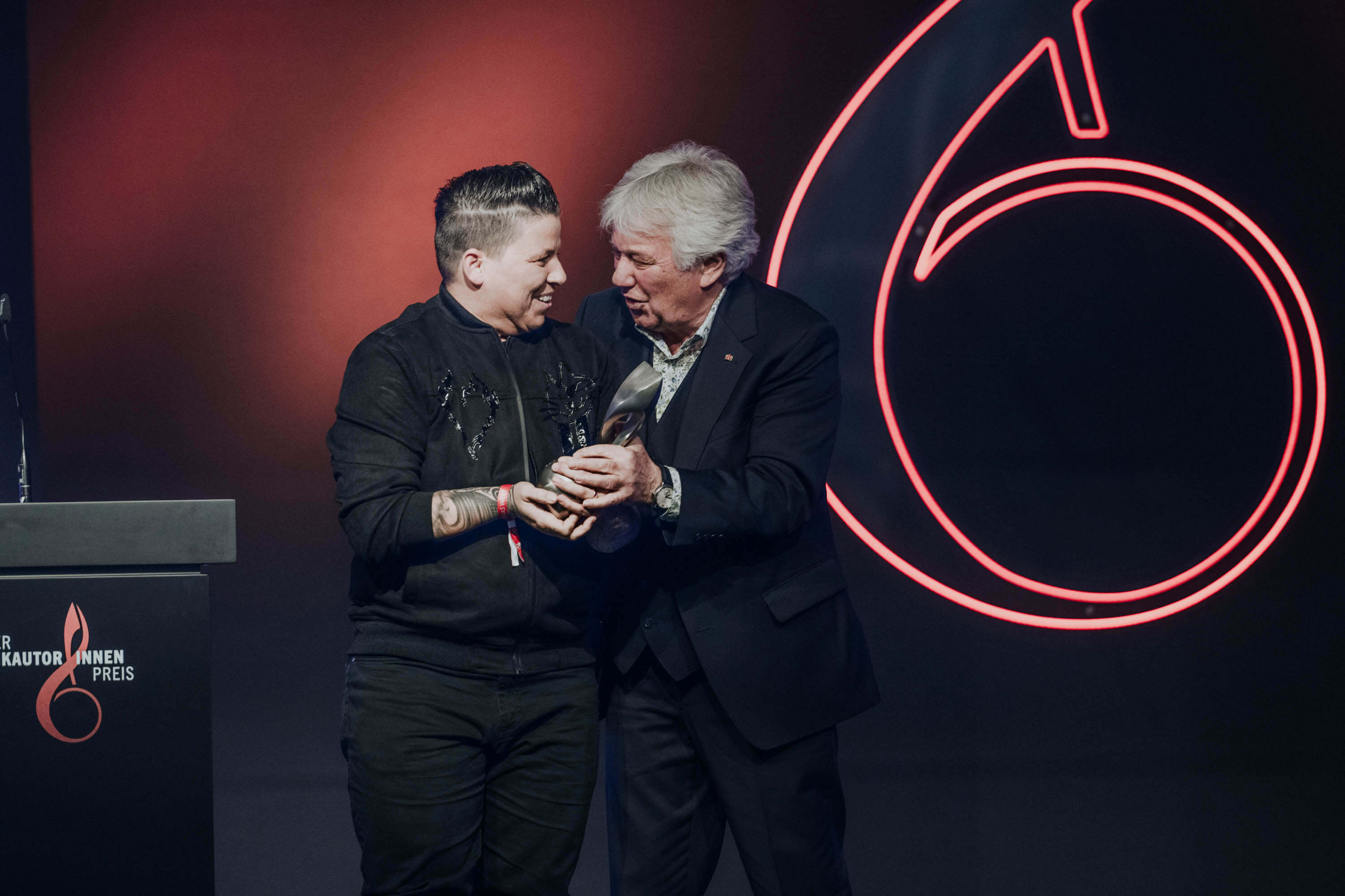 Premiere für die Sonderpreise „Inspiration“ und „Musik & Engagement“ beim Deutschen Musikautor*innenpreis. Die neuen Preiskategorien beleuchten einmal mehr das vielfältige Spektrum der bei der GEMA vertretenen Musikschaffenden und würdigen zusätzlich das Wirken der Autor*innen jenseits der reinen musikalischen Leistung. Beide Preise vergibt der GEMA Aufsichtsrat, der sich aus Komponist*innen, Textschaffenden und Verlegern zusammensetzt.